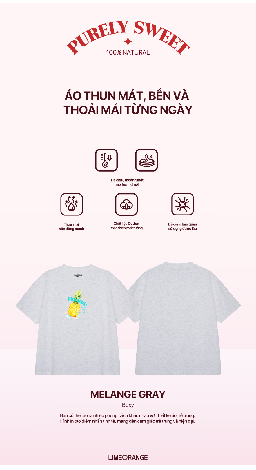 Thông tin sản phẩmĐánh giá sản phẩmHỏi đáp sản phẩmVận chuyển/ Trao đổi / Trả XEM TIẾPĐÁNH GIÁ SẢN PHẨM50 đánh giá5040302010Đăng nhập và viết đánh giáChọn 3 đánh giáChọn 10 đánh giáChọn 15 đánh giáChọn 20 đánh giáChọn 10 đánh giáThứ tự mới nhấtThứ tự thích nhiềuThứ tự bình luận nhiềuThứ tự mới nhấtHomeÁo ThunÁo thun inÁo thun hình in phom Boxy - Purely Sweet CollectionÁo thun hình in phom Boxy - Purely Sweet Collection300,000 VNDTạm ngưng bán0 đánh giáĐã bán 0Mã sốLU25221134 Màu sắcHướng dẫn chọn sizeDanh sách hệ thống cửa hàng LIMEORANGEGiao hàng hỏa tốc (có phí)Áp dụng cho đơn đặt trước 15h tại TP.HCM, vui lòng liên hệ CSKHĐổi hàng dễ dàngTrong 10 ngày với bất kỳ lý do gì (trừ sản phẩm giảm giá trên 40%)Miễn phí vận chuyểnHồ Chí Minh: Đơn từ 300K Ngoại thành: Đơn từ 450KĐa dạng hình thức thanh toánCOD/ QR thanh toán / Thẻ tín dụng/ MoMo/ ZaloPay...